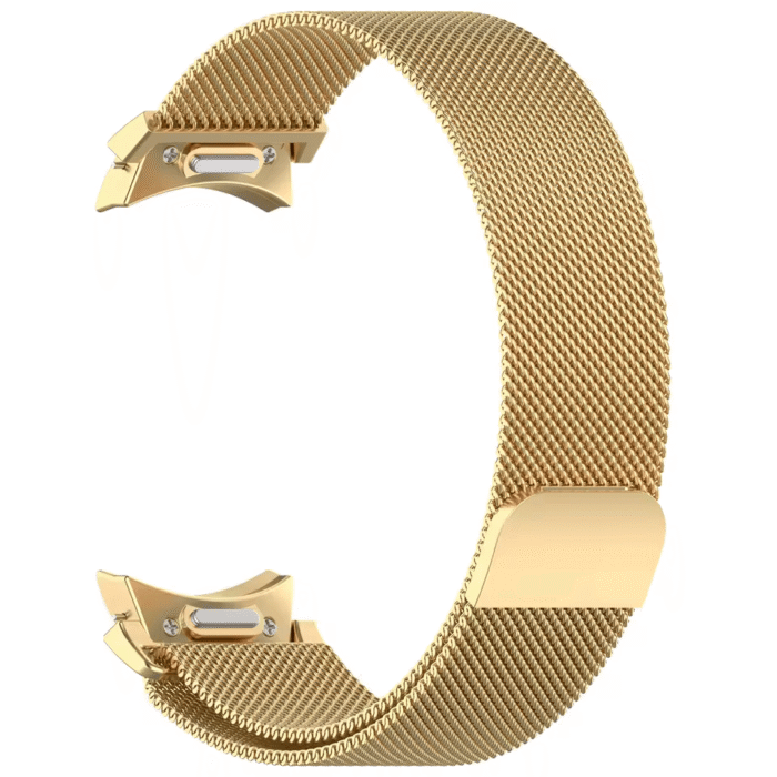 Pasek Mediolański Milanese Samsung Watch 5 pro 45mm – Złoty. ImpressBand łączy minimalistyczny design z elegancją i wygodą. Wykonany z wysokiej jakości materiałów, zapewnia trwałość i komfort noszenia przez cały dzień. Magnetyczne zapięcie umożliwia szybkie i precyzyjne dopasowanie do nadgarstka, a uniwersalny styl pasuje do każdego Galaxy Watch.